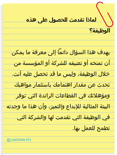 مهارات وظيفية 101 On Twitter وراء كل سؤال فكرة كيف تجيب عن السؤال التالي أثناء المقابلة الوظيفية لماذا تقدمت للحصول على هذه الوظيفة Http T Co Pp5buex8dy
