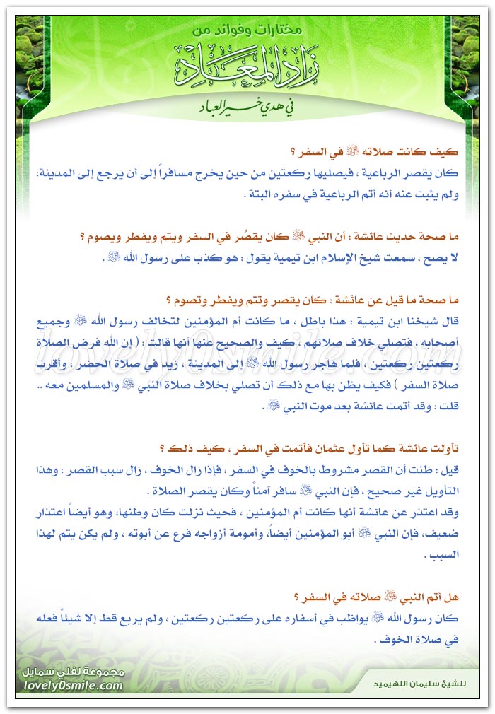 ارجع الى كتاب زاد المعاد في هدي خير العباد ولخص هدي النبي صلى الله عليه وسلم في السفر في حدود خمسة اسطر موقع اسألني